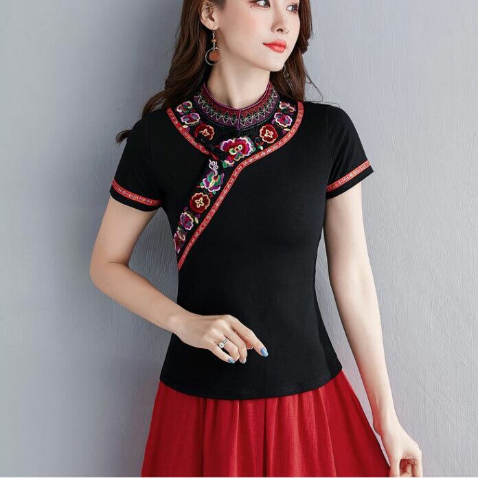 トップス 半袖 刺繍 アジアンテイスト zh240