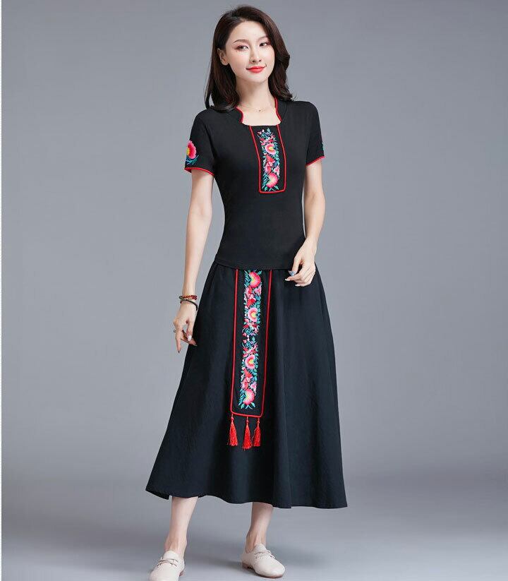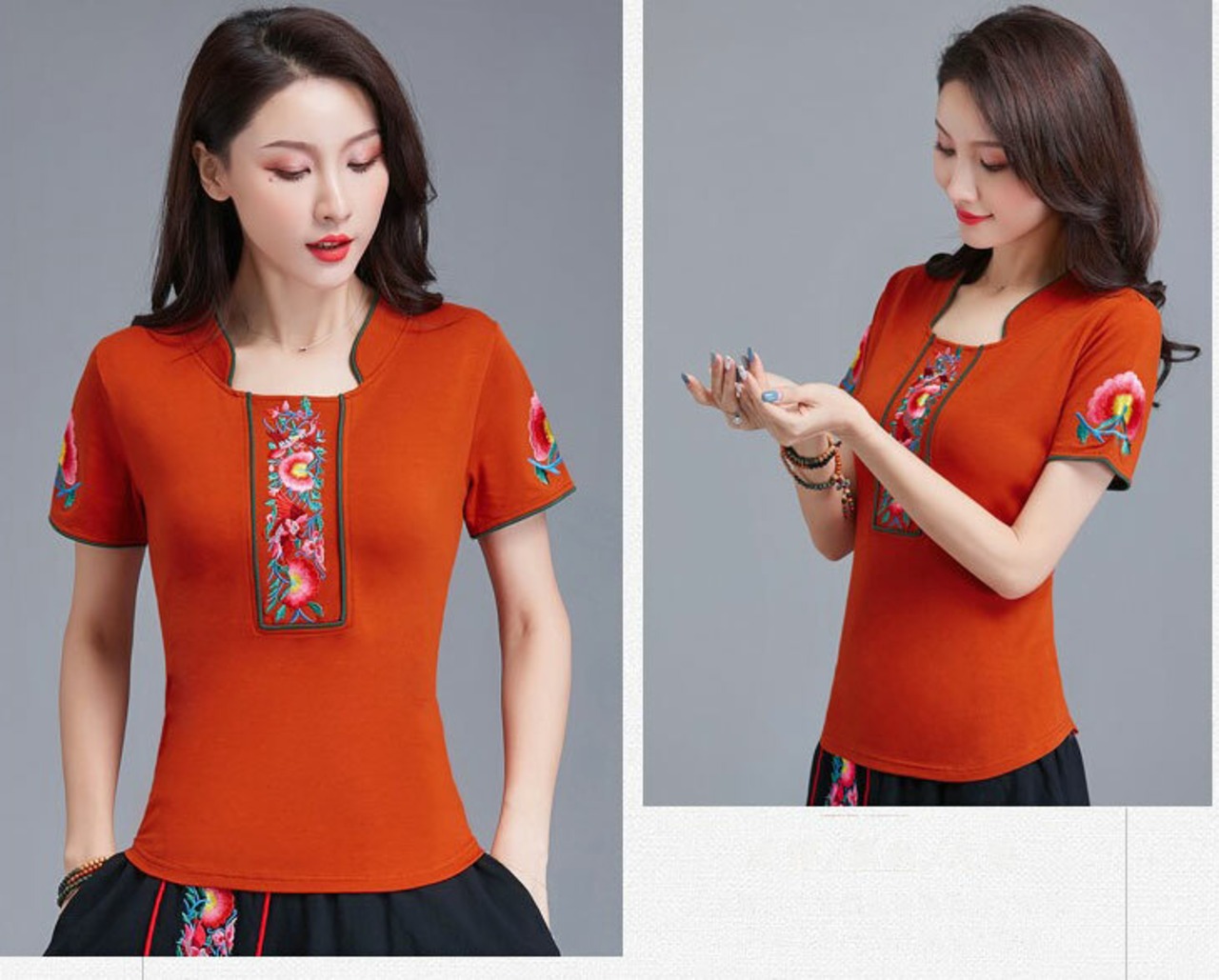 トップス 半袖 刺繍 アジアンテイスト zh239