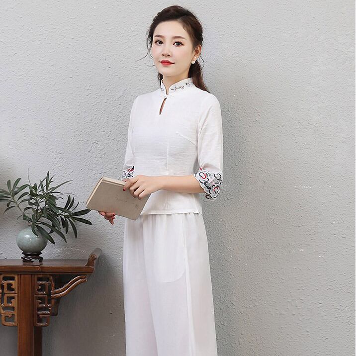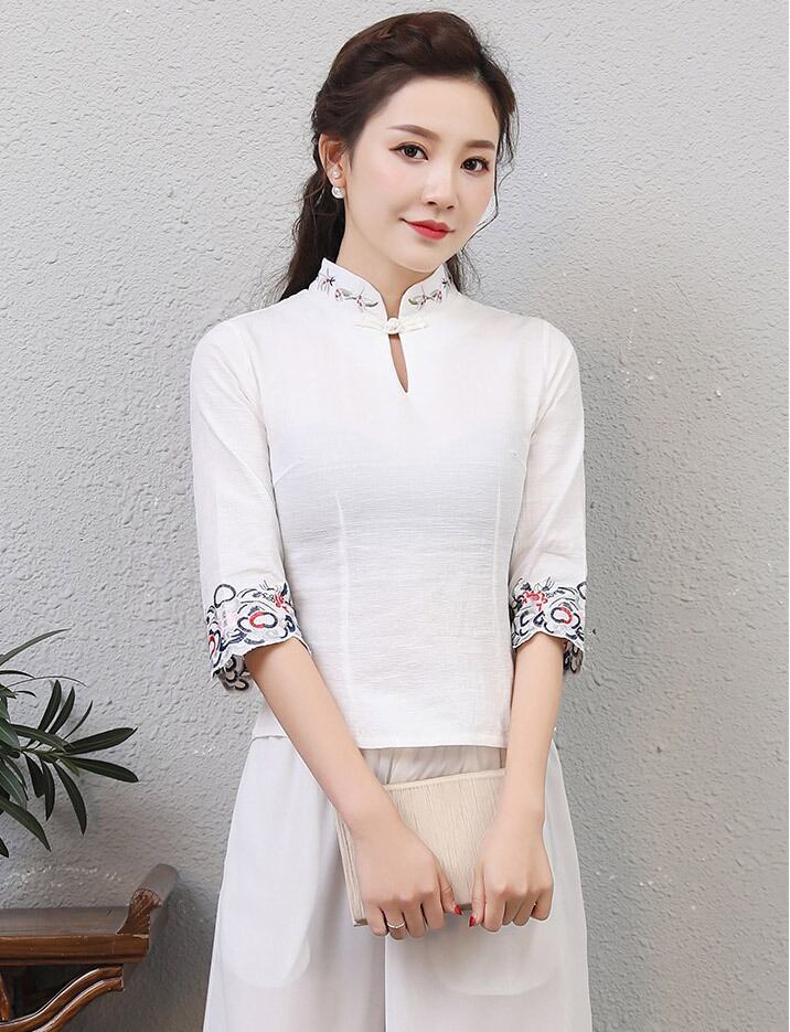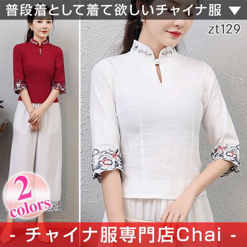 チャイナ服 刺繍 五分袖 トップス チャイナドレス 民族 衣装 本格 普段着 舞台 中国風 zt129