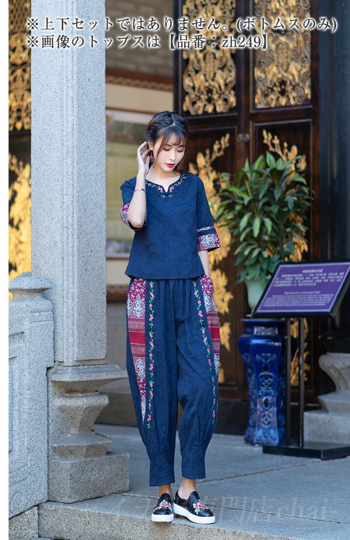 チャイナ服 刺繍 ワイドパンツ ボトムス ダンス チャイナテイスト 舞踏 中国風 民族衣装 zb124