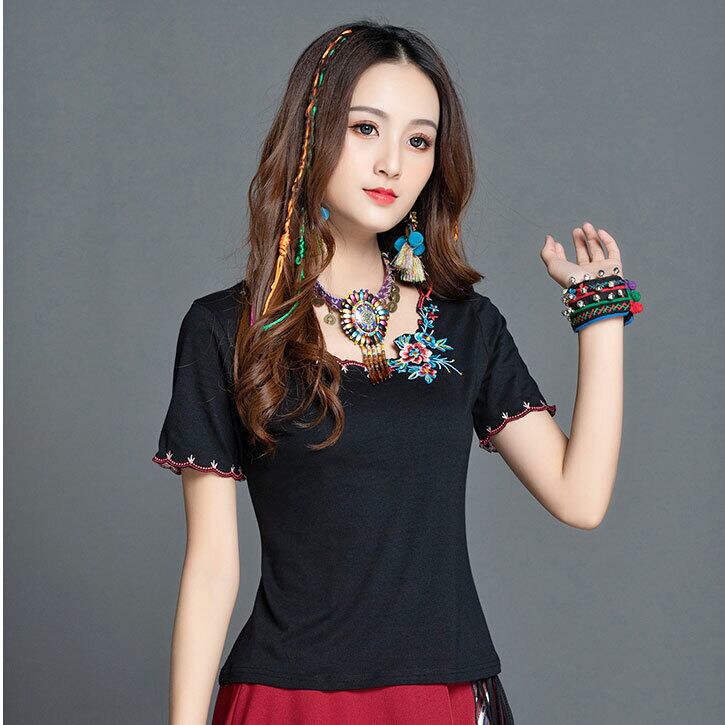 チャイナ服 トップス 半袖 Tシャツ アジアンテイスト 民族 衣装 上品 本格 普段着 舞台 中国風 zh253