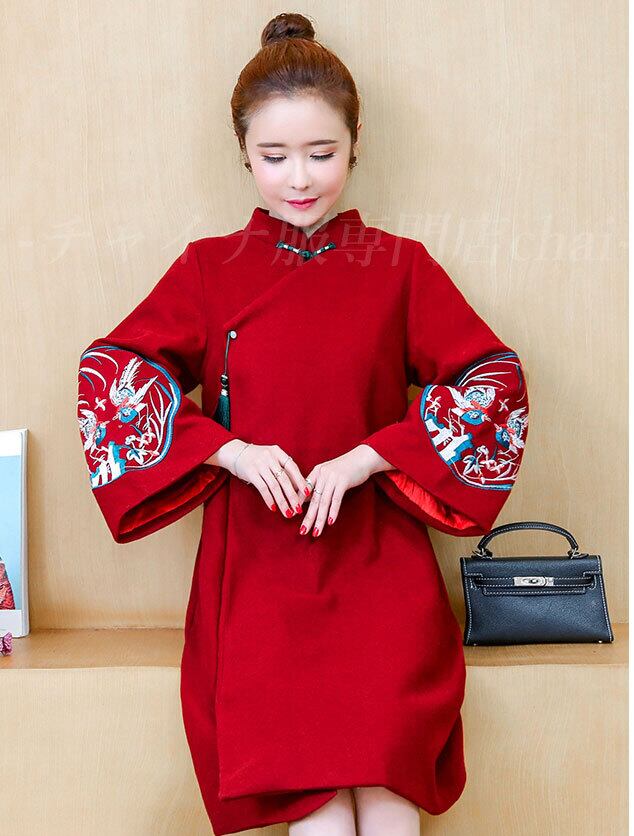 チャイナ服 アウター 刺繍 コート トップス 九分袖 普段着 羽織 チャイナ 民族衣装 zo126