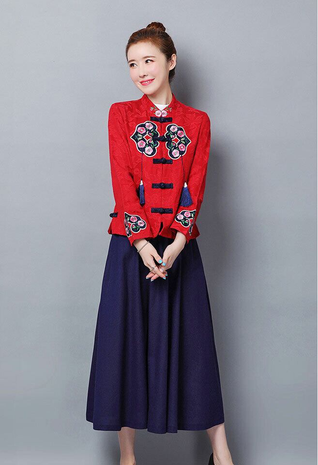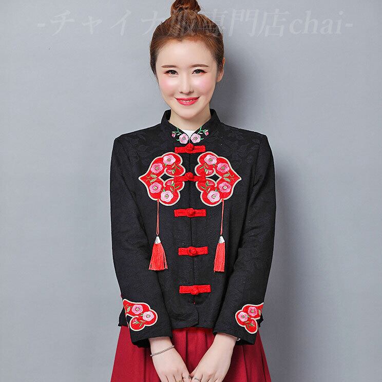 チャイナ服 トップス 長袖 カットソー 民族衣装 刺繍 チャイナドレス 上品 本格 普段着 舞台 中国風 zt189