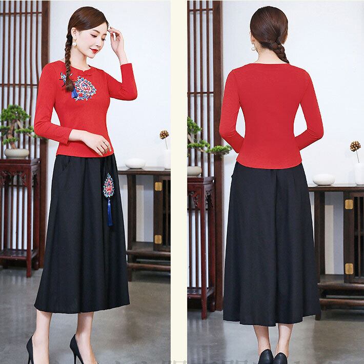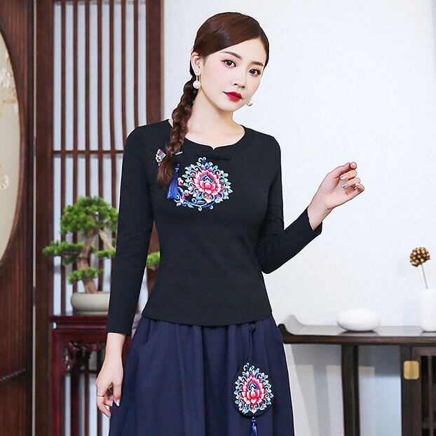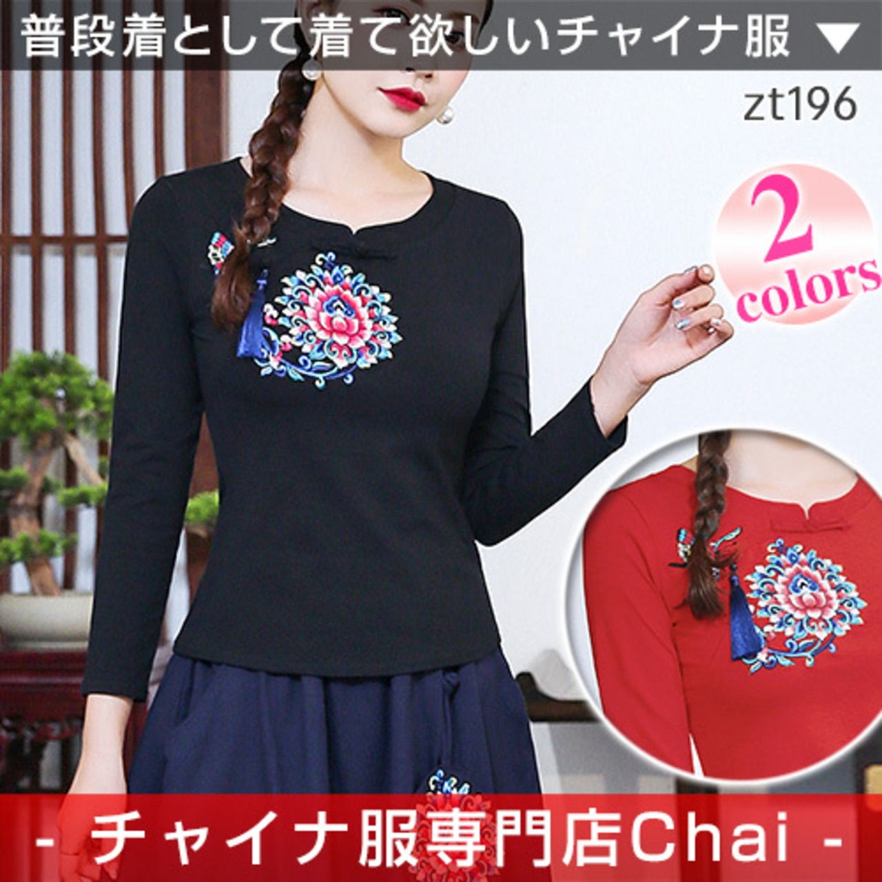 チャイナ服 トップス 長袖 刺繍 カットソー 民族衣装 チャイナドレス 上品 本格 普段着 中国風 zt196
