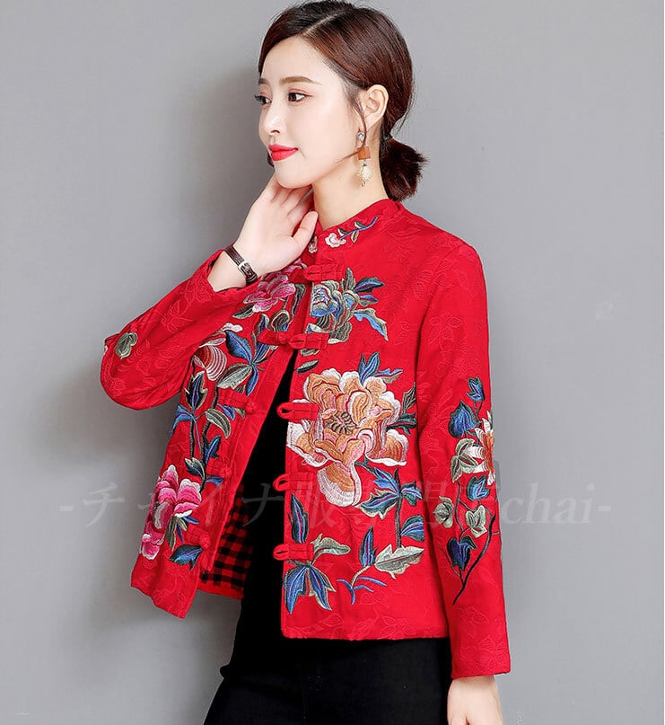 チャイナ服 トップス 前開き 長袖 刺繍 カットソー 民族衣装 チャイナドレス 上品 本格 普段着 中国風 zt198
