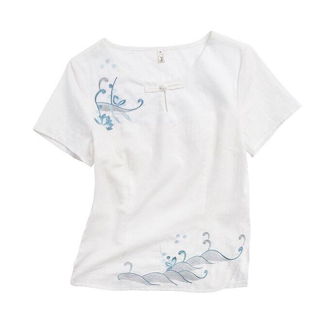 チャイナ服 半袖 トップス 刺繍 シンプルな風合い 民族 衣装 上品 本格 普段着 舞台 中国風 zh259