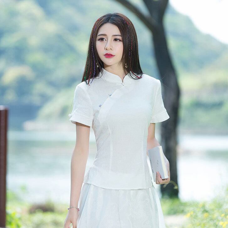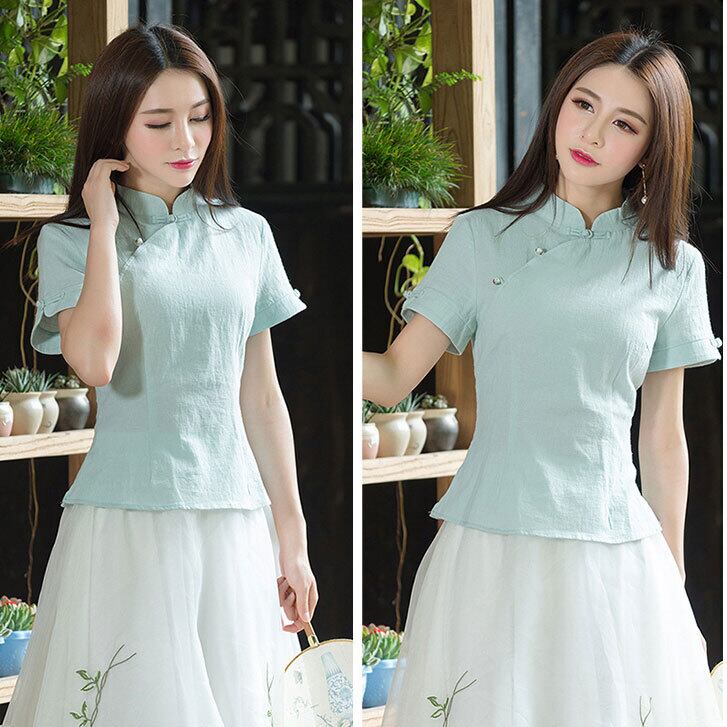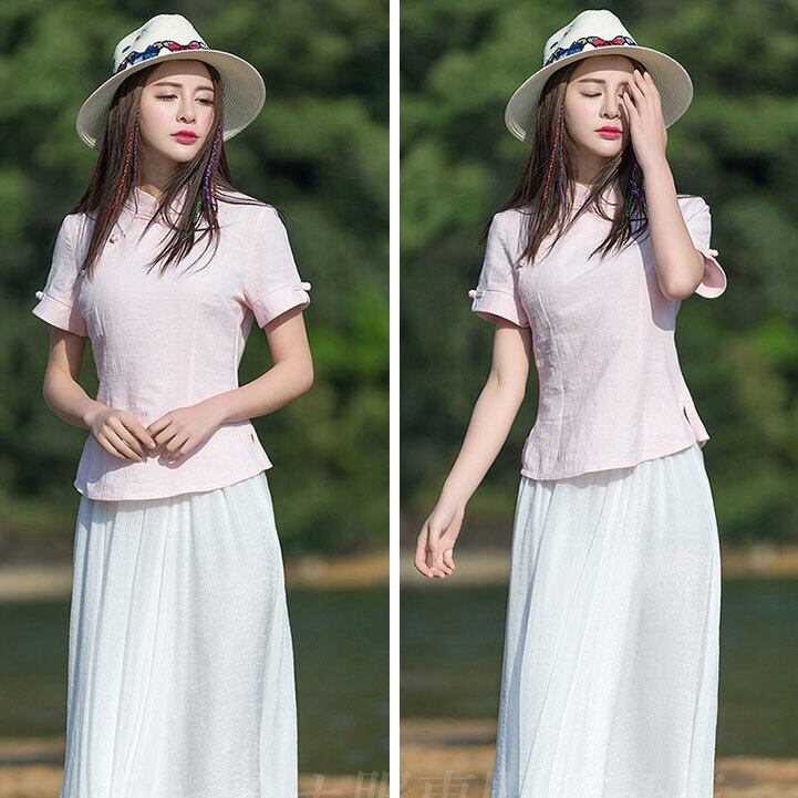 チャイナ服 半袖 トップス 無地 シンプルな風合い チャイナトップス 民族 衣装 上品 本格 普段着 舞台 中国風 zh260