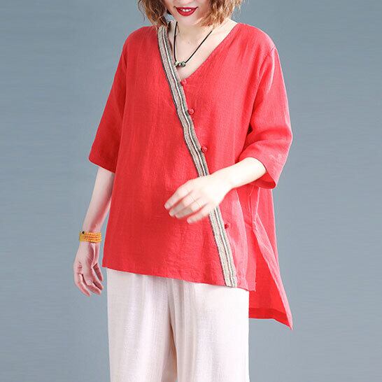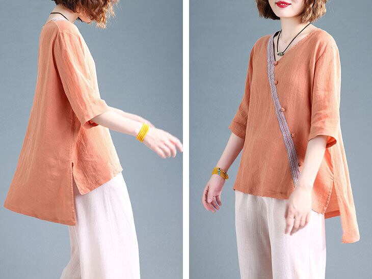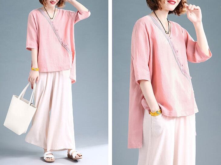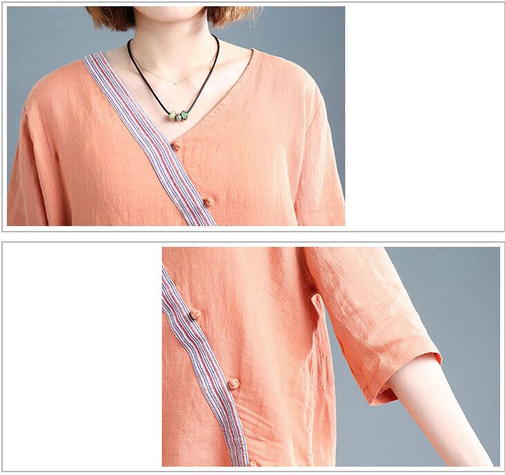 チャイナ服 五分袖 トップス Vネック ゆったり チャイナボタン 斜めあわせ チャイナトップス 民族 衣装 上品 本格 普段着 舞台 中国風 zh265