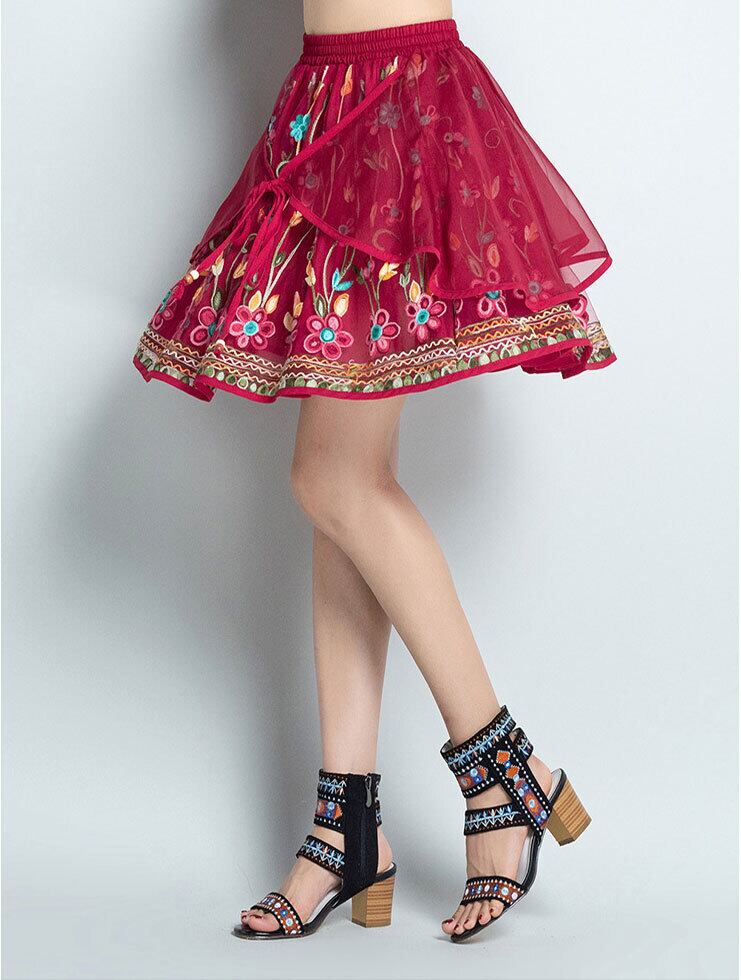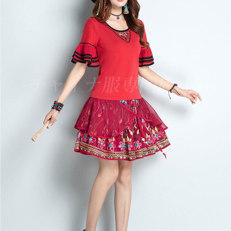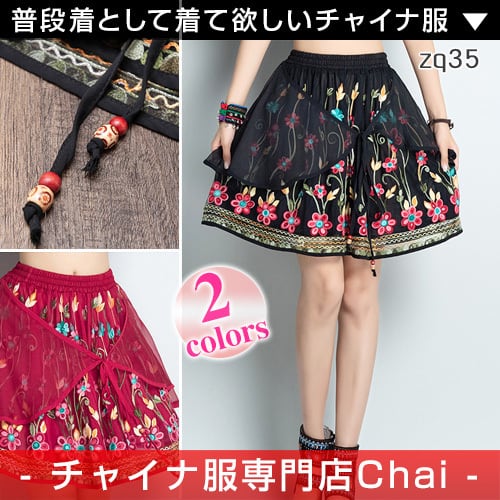 チャイナ服 スカート 装飾スカート ミニスカート 花柄 Aライン 民族風 チャイナスカート ボトムス 舞踏 中国風 民族衣装 zq35