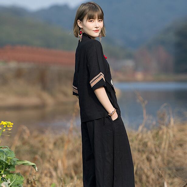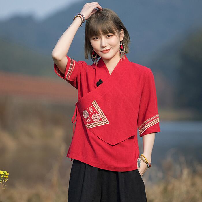 チャイナトップス アシンメトリー 五分袖 zh291