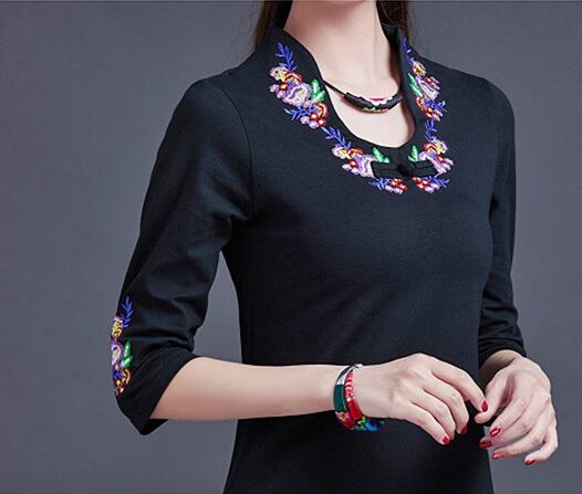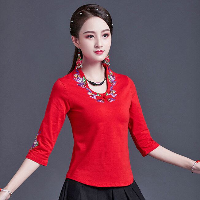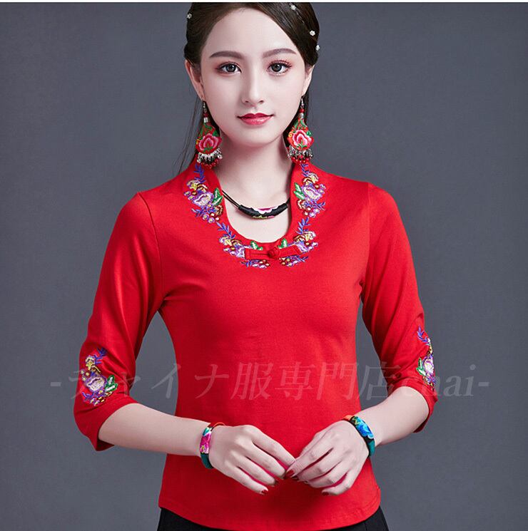 チャイナ 刺繍Tシャツ 七分袖 zt267