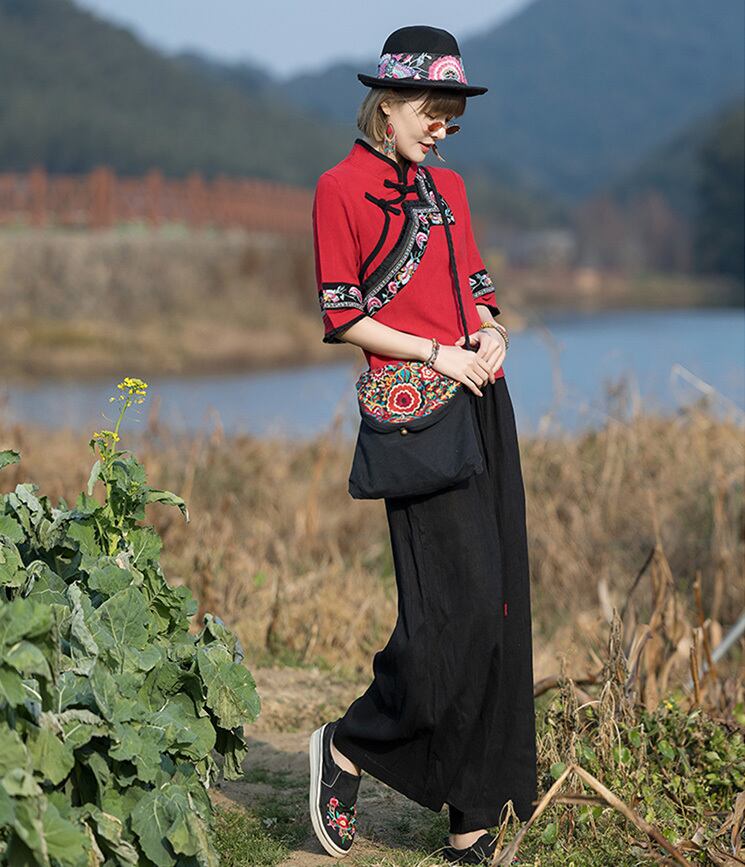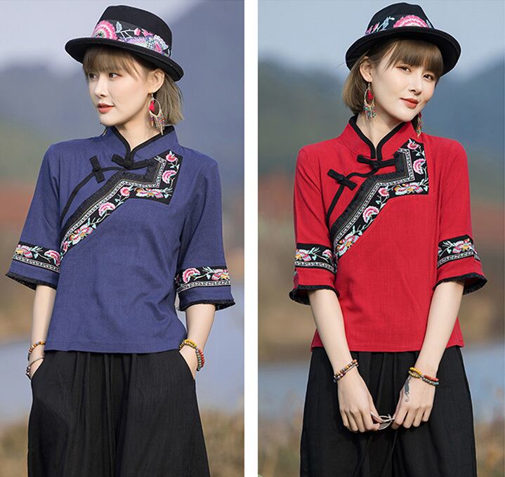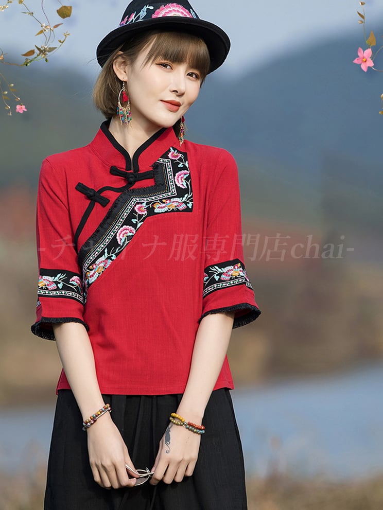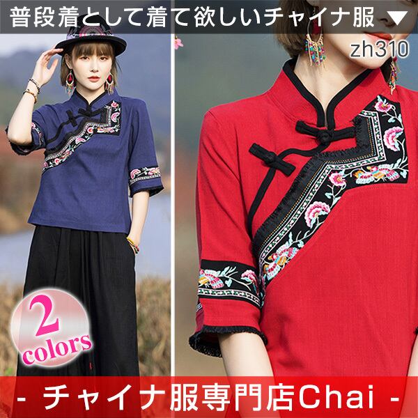 チャイナトップス アシンメトリー 五分袖 zh310