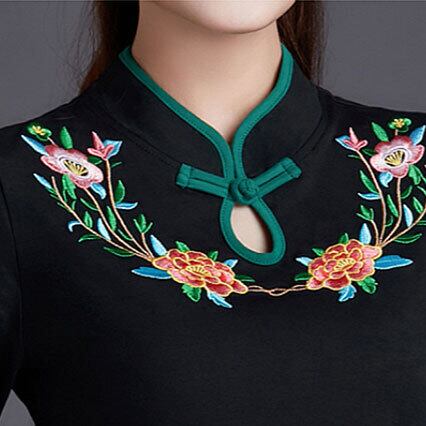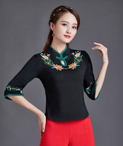 チャイナ 七分袖 綿 刺繍 カットソー zh318