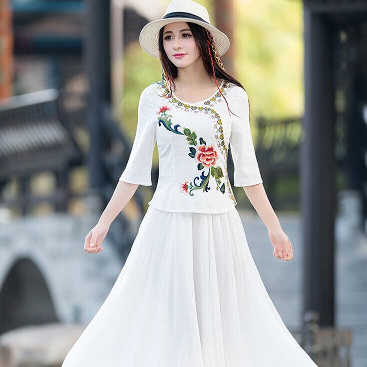 チャイナ 五分袖 刺繍 カットソー 花柄 zh333