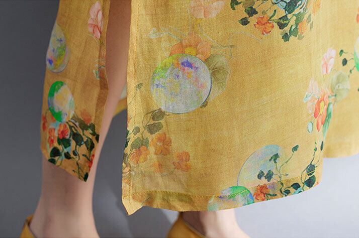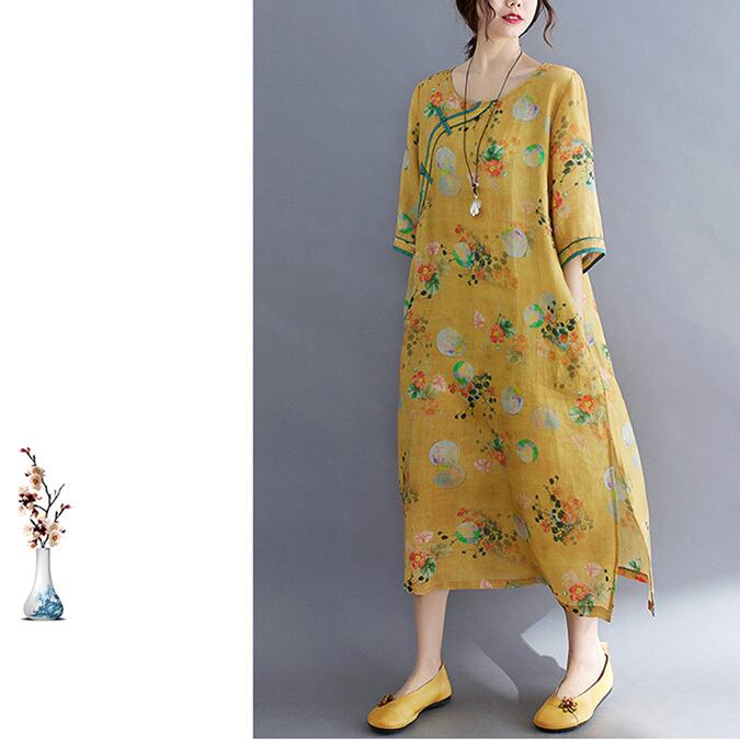 チャイナワンピ 五分袖 チャイナボタン ロング丈 zl213