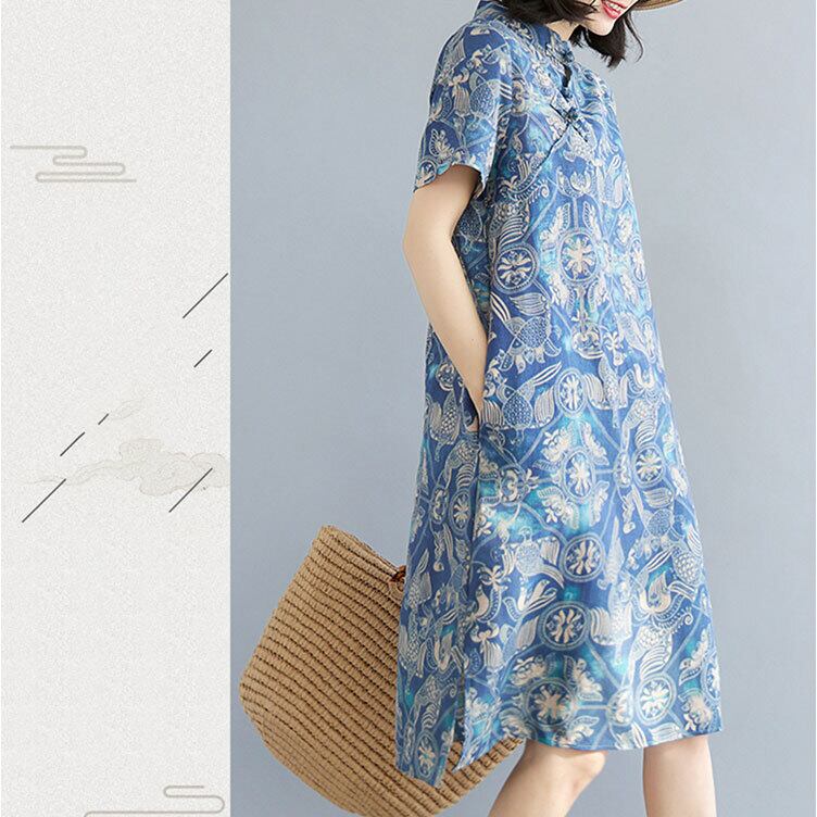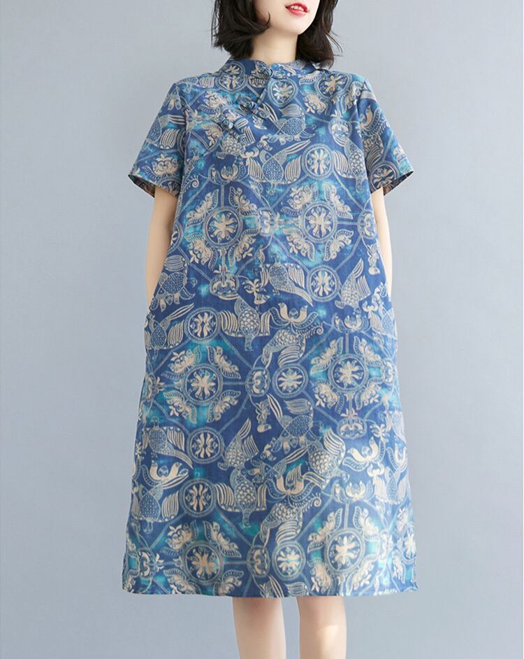 チャイナ服 ワンピース ゆったり 総オリエンタル柄 ひざ丈 zs177