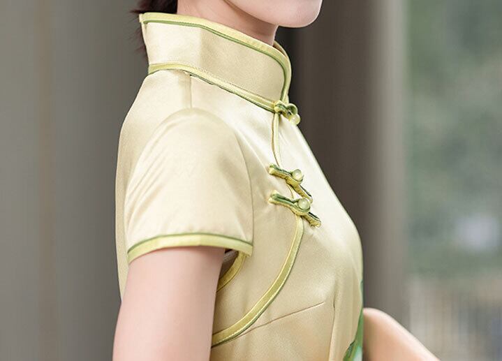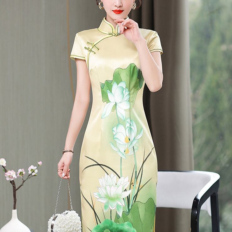 チャイナドレス 雅 半袖 ロング丈 スリット ワンピース zl230
