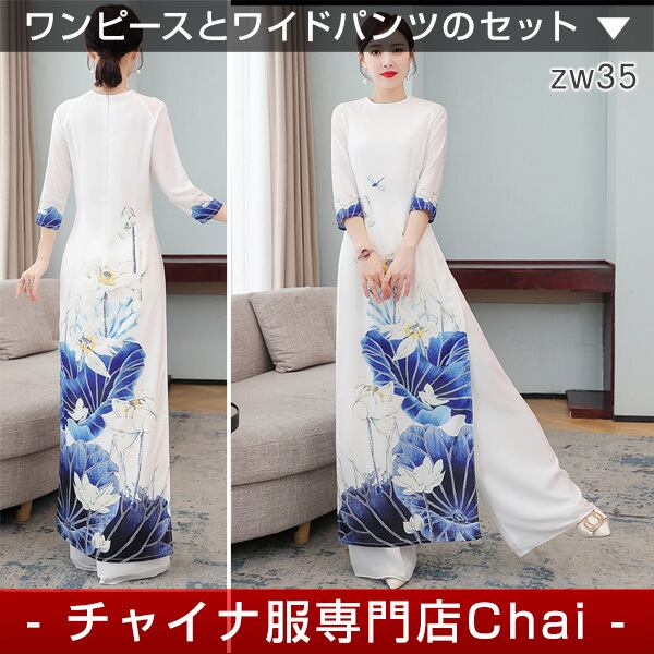 チャイナ服 ワンピース ワイドパンツ セット zw35