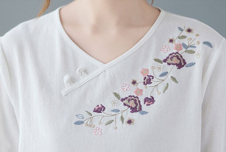 普段着チャイナ 刺繍 ゆったりトップス zt275