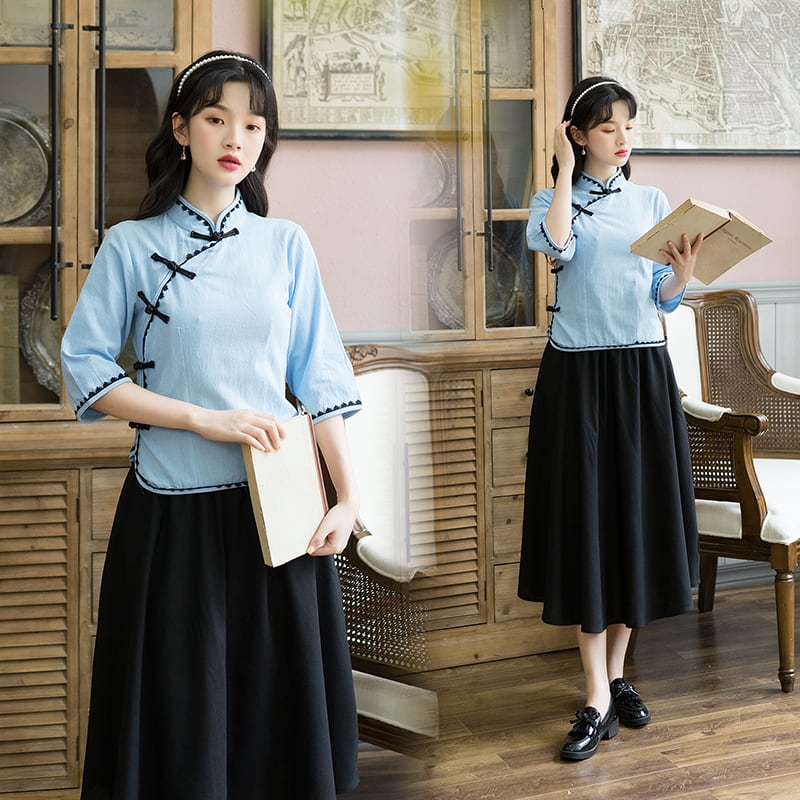 普段着チャイナ 刺繍 シンプル トップス 3色 zt278