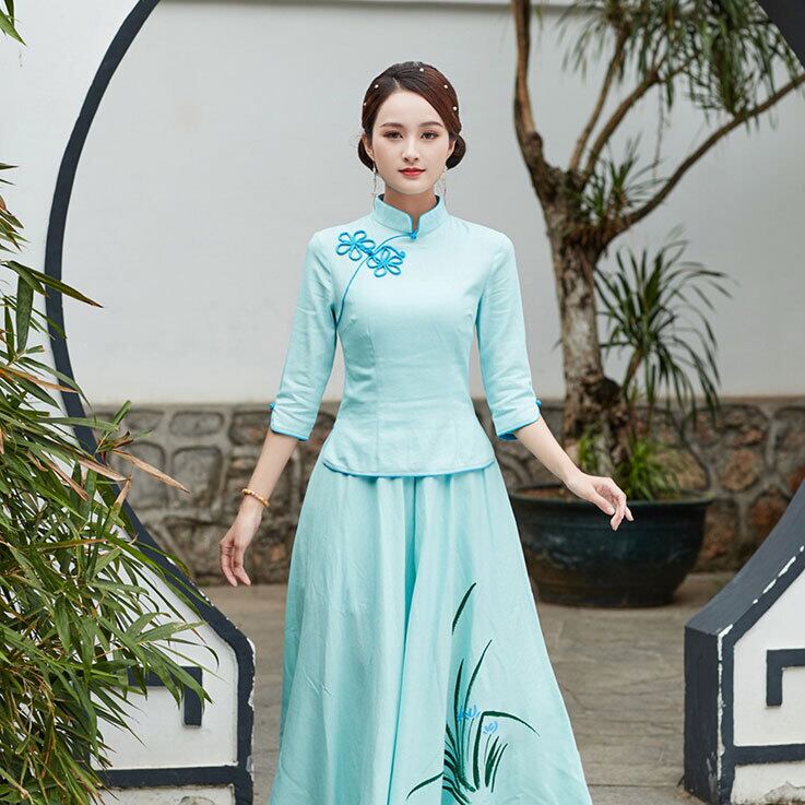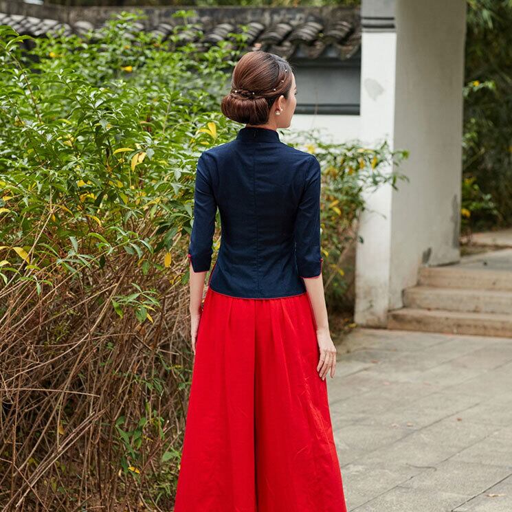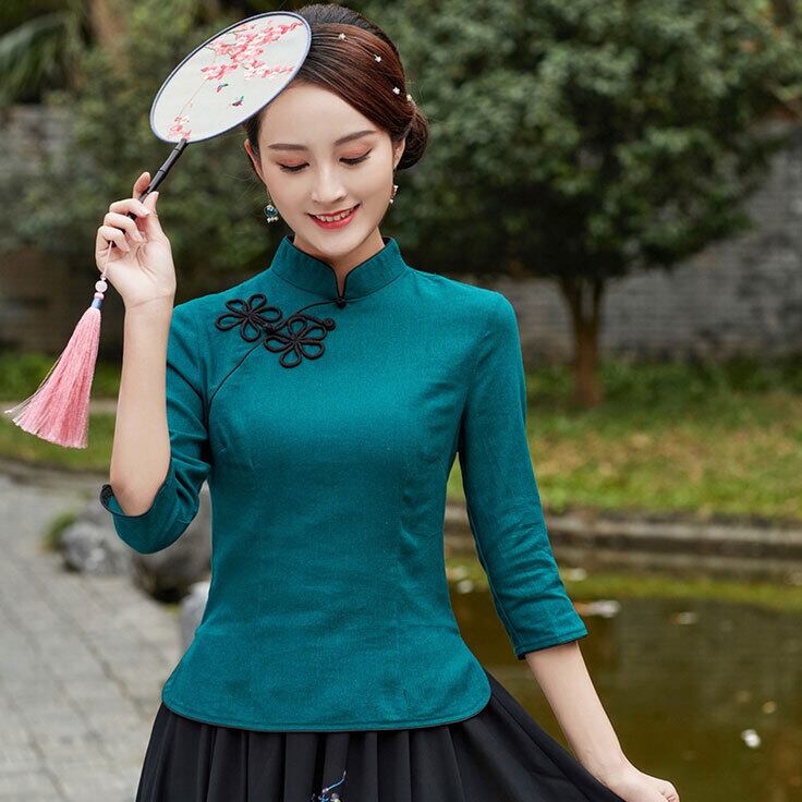普段着チャイナ 無地 七分袖 トップス 6色 zt279