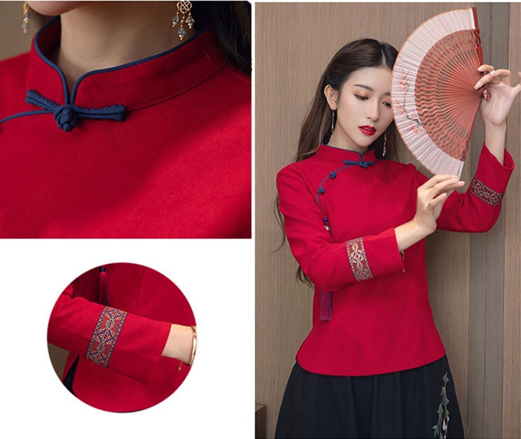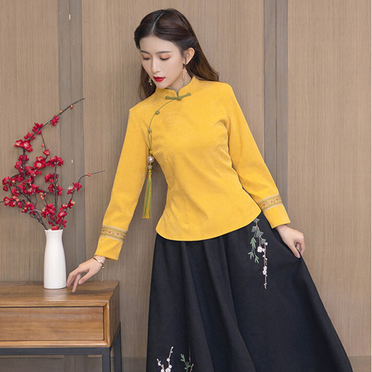 普段着チャイナ 無地 長袖 トップス 3色 zt282