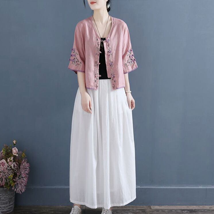 普段着チャイナ ゆったり 刺繍 前開き トップス 5色 zt283