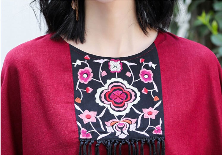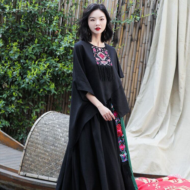普段着チャイナ 刺繍 アシンメトリー Tシャツ zt285