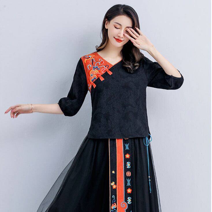 普段着チャイナ 五分袖 民族柄 刺繍 トップス zt290