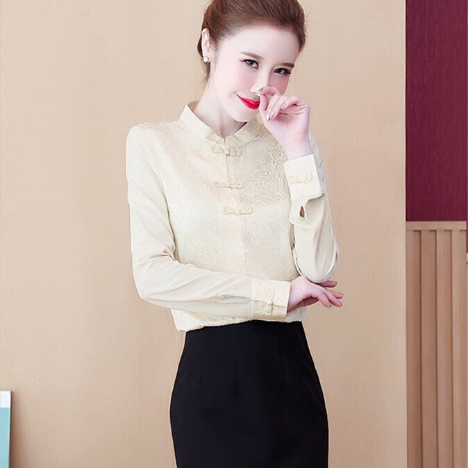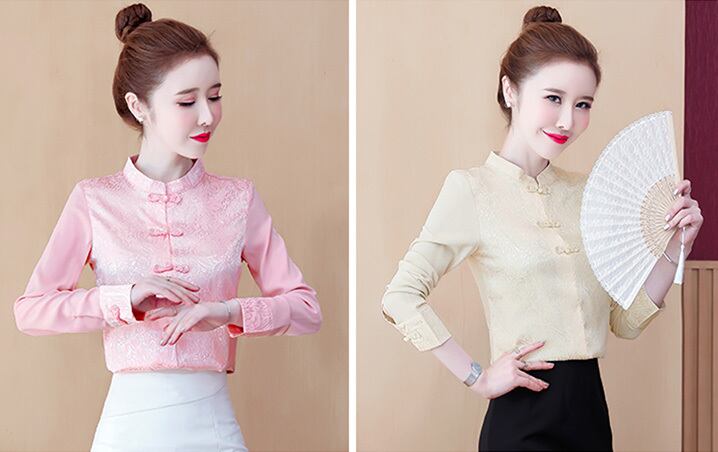 チャイナトップス 長袖 上品 チャイナボタン zt309