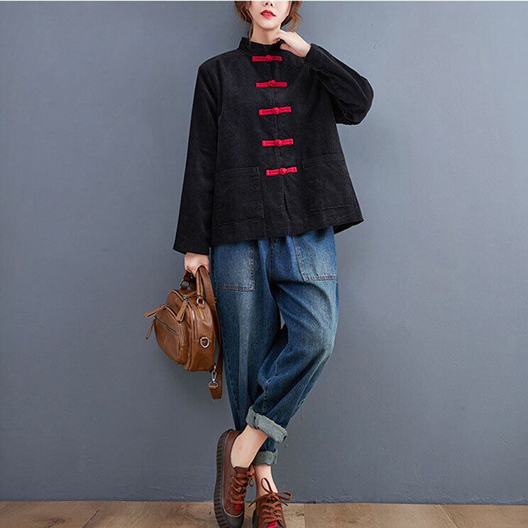 チャイナトップス 長袖 無地 チャイナボタン zt316