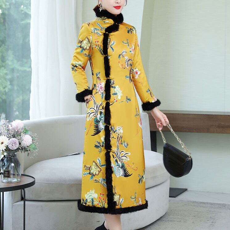 冬物 チャイナワンピ 長袖 ショートファー zl238