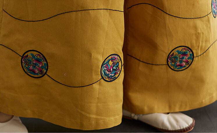 チャイナ 普段着 刺繍 ワイドパンツ zb161