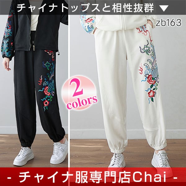 チャイナパンツ 普段着 刺繍 スウェットパンツ zb163