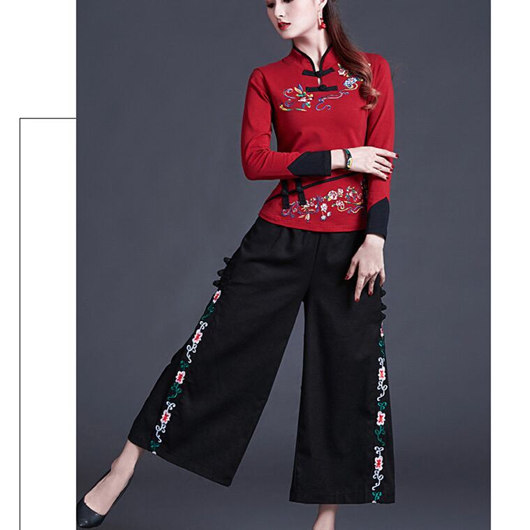 チャイナ服 普段着 刺繍 長袖トップス zt324