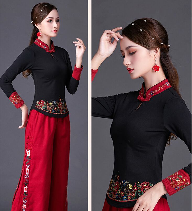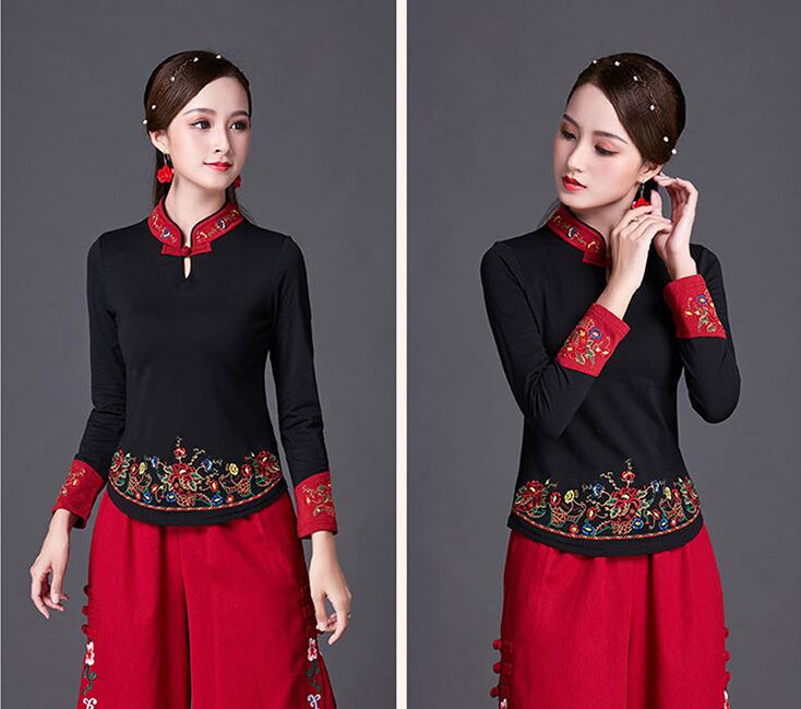 チャイナ服 普段着 刺繍 長袖トップス zt325