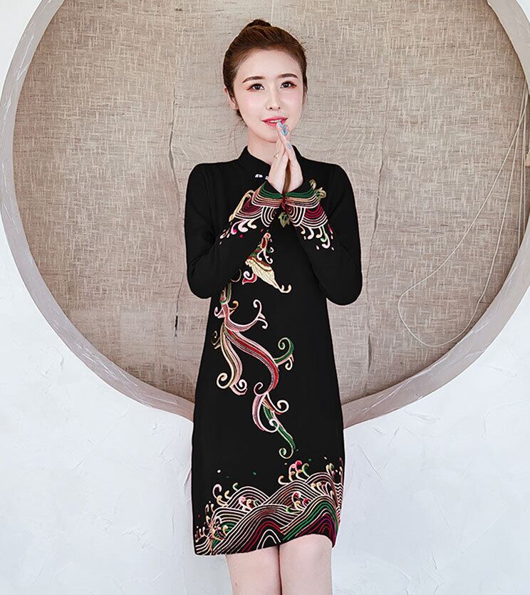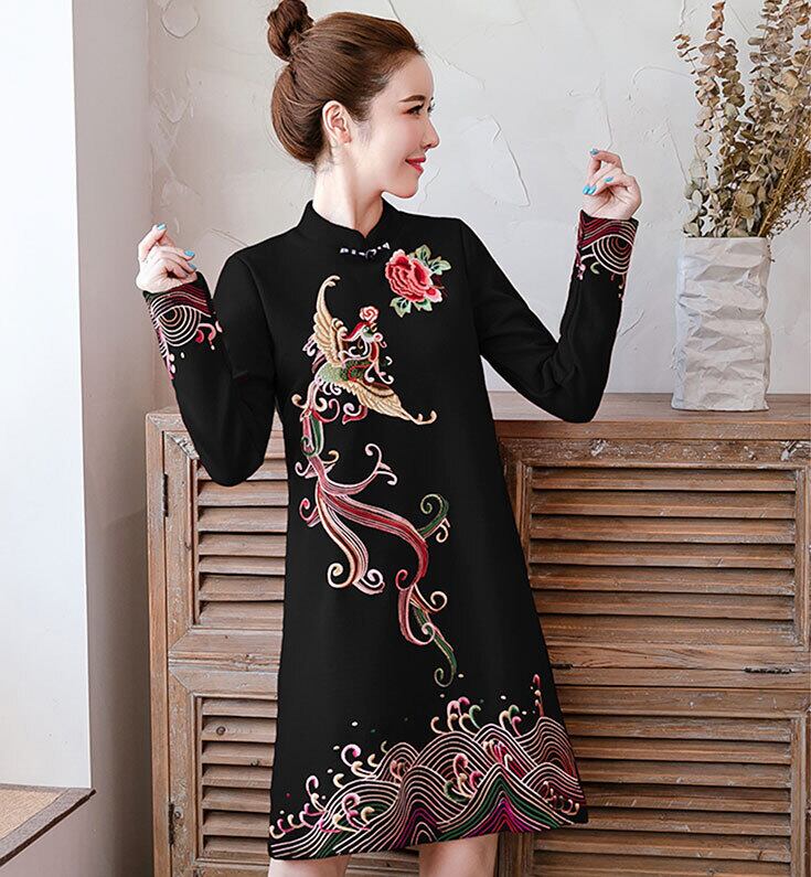 チャイナ服 普段着 刺繍 ゆったり チャイナドレス zs199