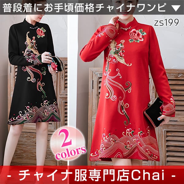 トップスも普段着も揃うチャイナ服専門店chaiです。こちらはチャイナ服 普段着 刺繍 ゆったり チャイナドレス zs199の商品ページです。ピタッとしていないタイプのチャイナドレスで、ゆったりシルエットの上品なアイテムです。