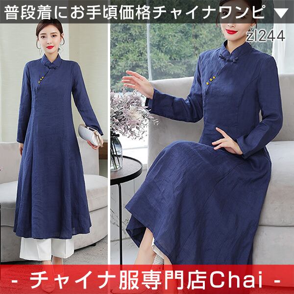 トップスも普段着も揃うチャイナ服専門店chaiです。こちらはチャイナ服 普段着 長袖 無地 ロング丈ワンピ zl244の商品ページです。シンプルな無地ロング丈のチャイナワンピースで、上にアウターなど重ね着もしやすいアイテムです。