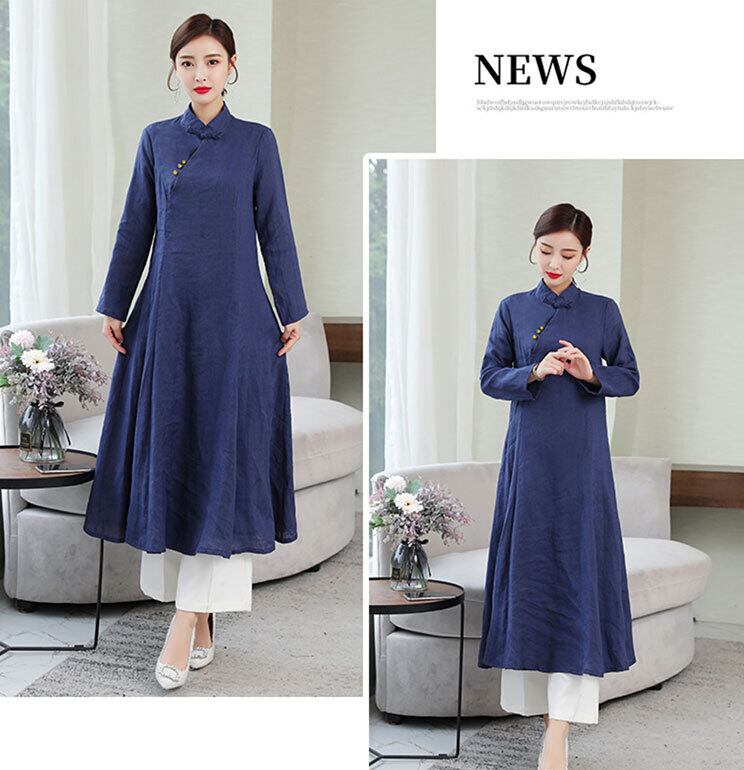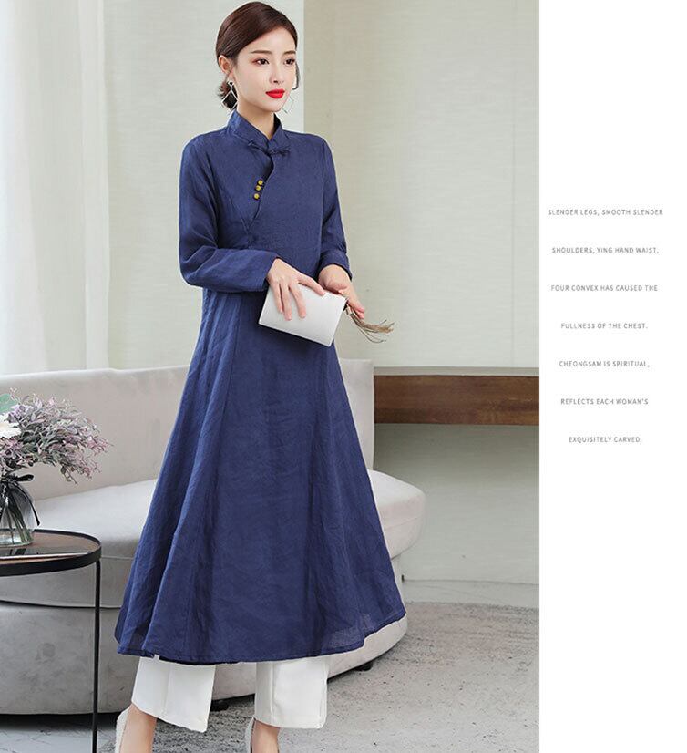 チャイナ服 普段着 長袖 無地 ロング丈ワンピ zl244