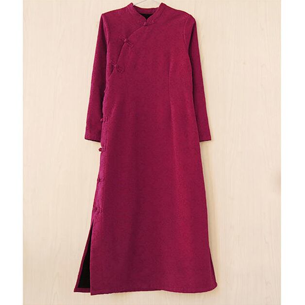 トップスも普段着も揃うチャイナ服専門店chaiです。こちらはチャイナドレス 普段着 ワンピース 長袖 厚め zl247の商品ページです。シンプルなデザインで普段着しやすく、厚めの生地が秋冬に嬉しいチャイナドレスです。