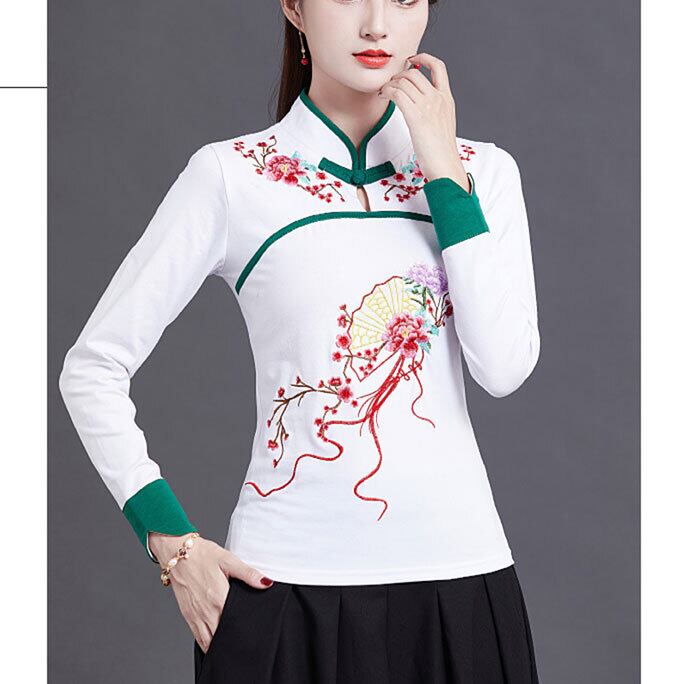 チャイナ服 トップス 普段着 刺繍ロンT zt334