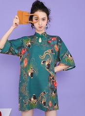 トップスも普段着も揃うチャイナ服専門店chaiです。こちらはチャイナワンピース 五分袖 ショート丈 オーバーサイズトップス zs201の商品ページです。鯉の柄が個性的なデザインで、短めワンピースで着てもオーバーサイズトップスとして着ても使えるアイテムです。