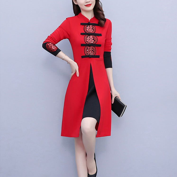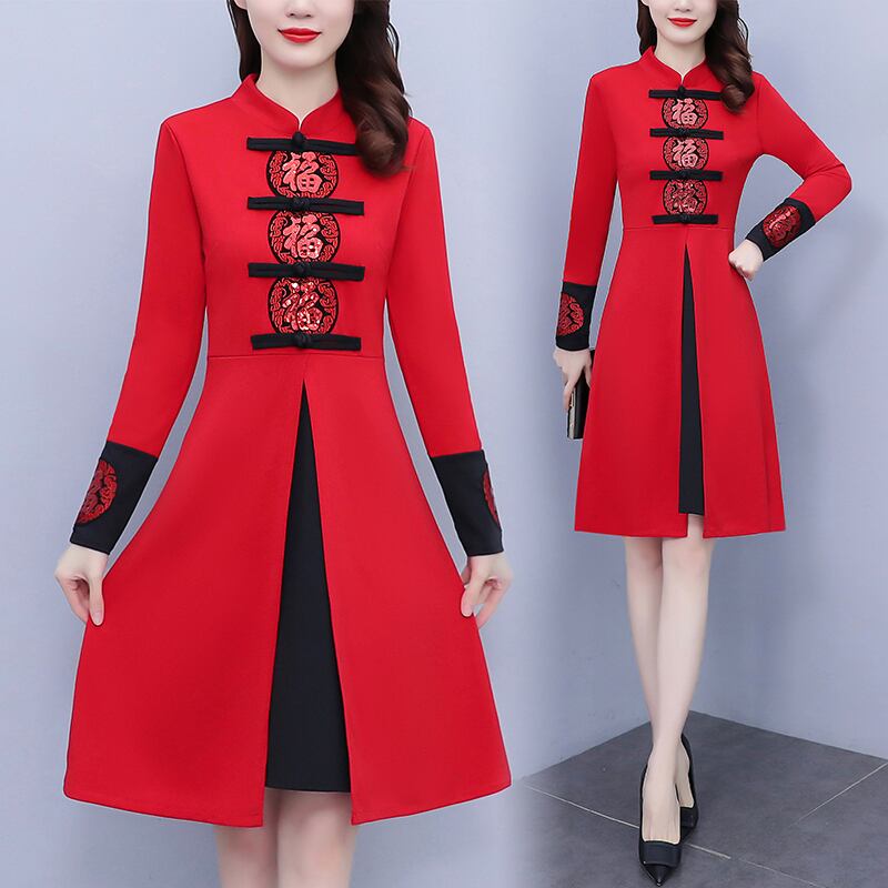 チャイナ服 ワンピース お祝い 福柄 春節 旗袍 zs202