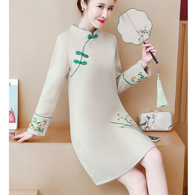 チャイナ服 ワンピース 刺繍袖 チャイナボタン zs206
