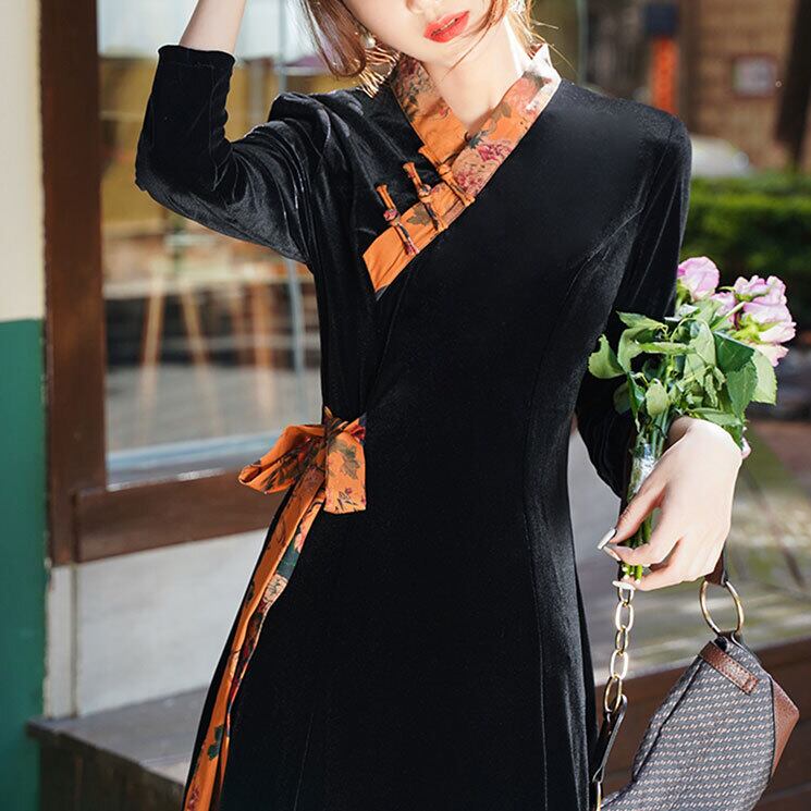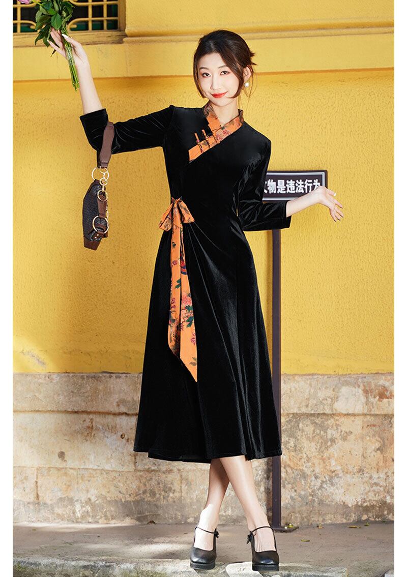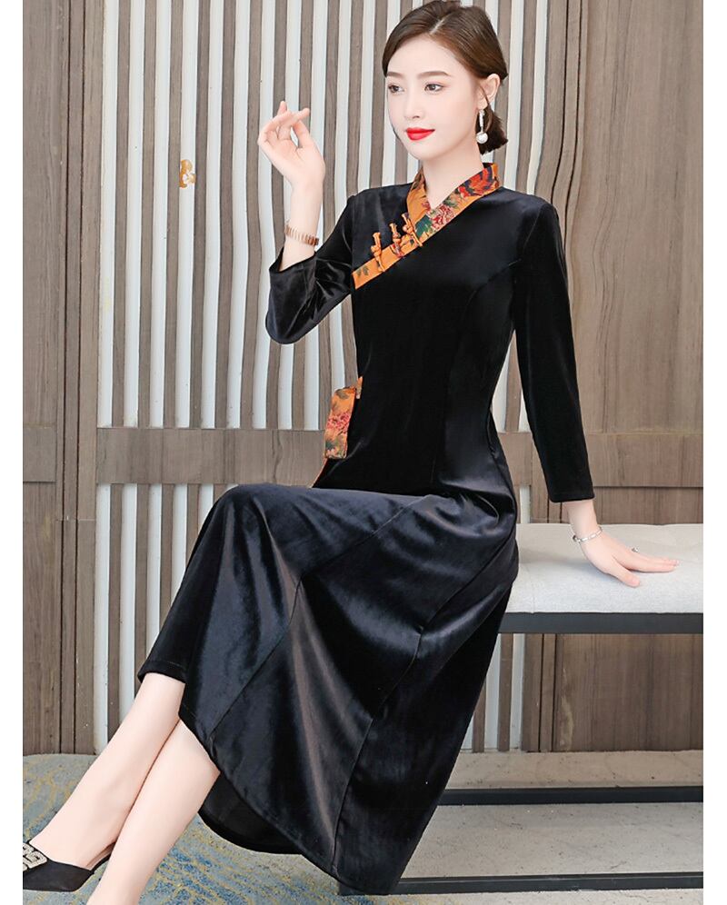 チャイナ服 普段着 九分袖 ロングワンピ チャイナドレス zl261