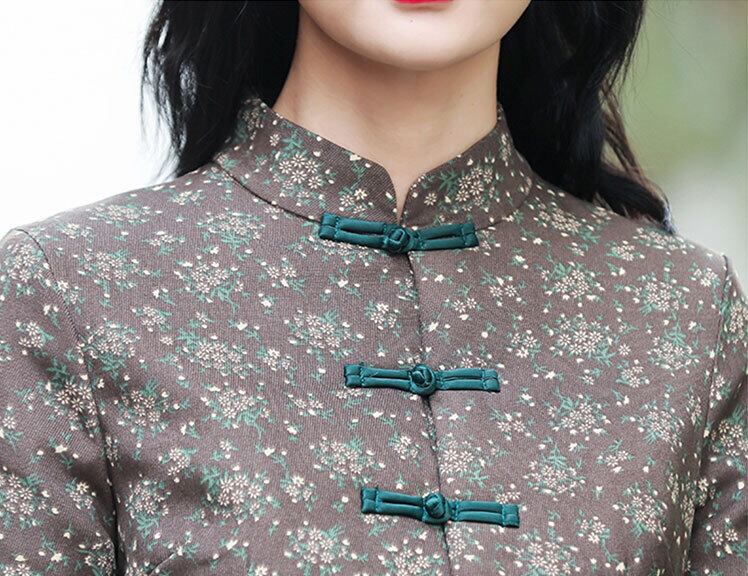 チャイナ服 トップス 普段着 落ち着いた風合い 長袖 zt341