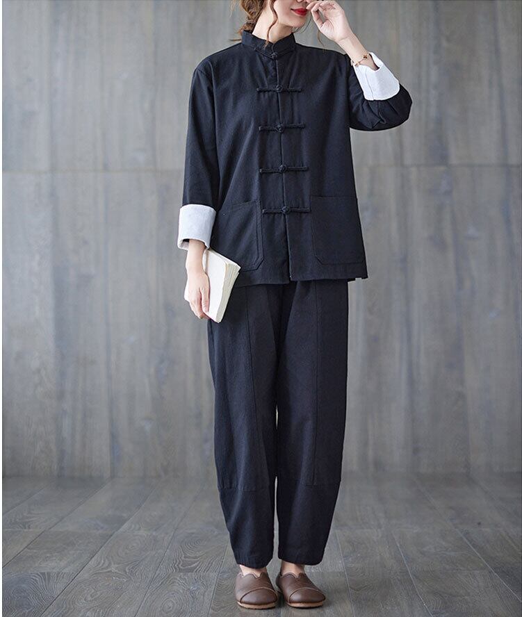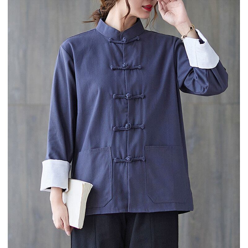 チャイナ服 トップス シンプル 無地 長袖 太極拳着 zt343