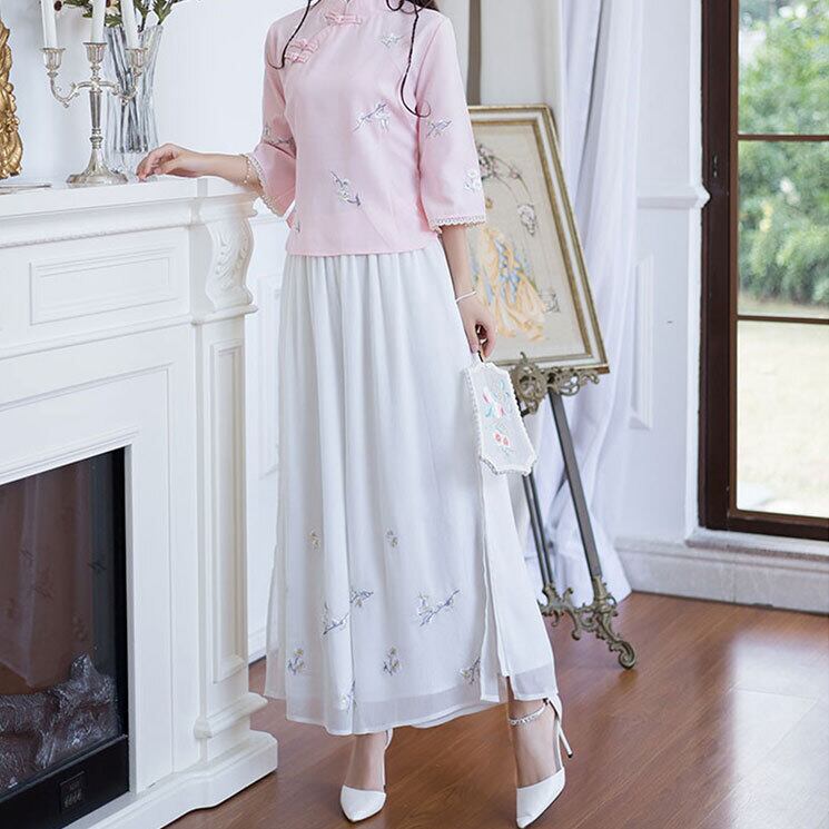 チャイナ服 ワイドパンツ シフォン 普段着チャイナ zb169