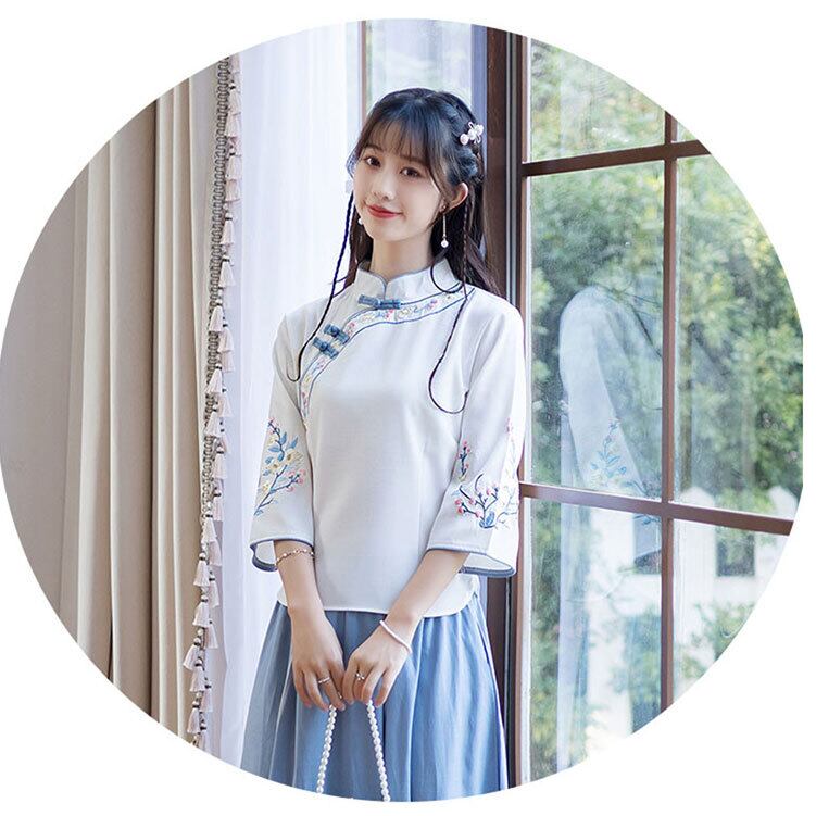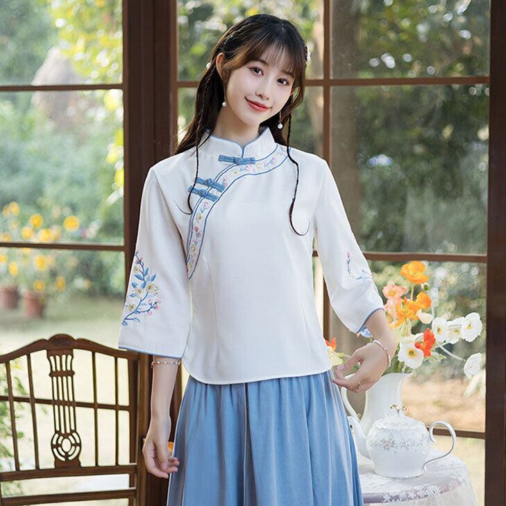 トップスも普段着も揃うチャイナ服専門店chaiです。こちらはチャイナトップス 普段着 可愛いモダンチャイナ 刺繍 zh346の商品ページです。刺繍が可愛いモダンチャイナトップスで、爽やかで上品な風合いが春夏に使いやすいアイテムです。
